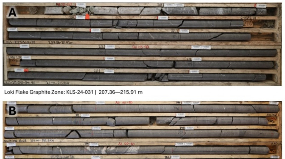 An additional two drillholes, totaling 912 m, were drilled into a parallel fault zone approximately 600 m northeast of the Loki Zone (Figure 2). Both holes, KLS-24-042 and KLS-24-046 intersected graphite mineralization and were comprehensively sampled (Figure 5). Results from these holes and the remaining Loki Zone holes are pending, as well as metallurgical testing of samples from KLS-24-052.