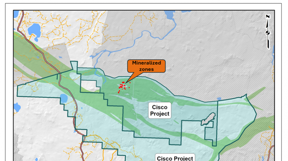 The Cisco Property is now comprised of a total of 767 contiguous mineral claims over 39,389 hectares ("ha"), including more than 30 kilometres ("km") of strike length on the Frotet-Evans Greenstone Belt, which hosts the Sirmac and Moblan lithium deposits, located 130 km and 180 km away, respectively. The Additional Cisco Claims are primarily south of the original Cisco Property claims, adding several kilometres of prospective greenstone rocks and providing extensive strategic sites for future development and mining infrastructure scenarios.