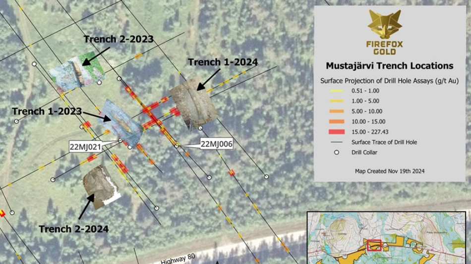 FireFox Gold Corp. (TSX.V:FFOX)(OTCQB:FFOXF)("FireFox" or the "Company") announces the completion of a successful new exploration trenching campaign that has extended surface high-grade gold mineralization at the East Target, within the Company's 100%-held Mustajärvi Gold Project in Lapland, Finland. A new trench at the East Target cut 10.1 metres averaging 13.79 g/t gold. This result builds on the first trench on the target in 2023 that reported bonanza gold grades of 6.87 metres averaging 59.12 g/t gold (see July 27, 2023 news release).