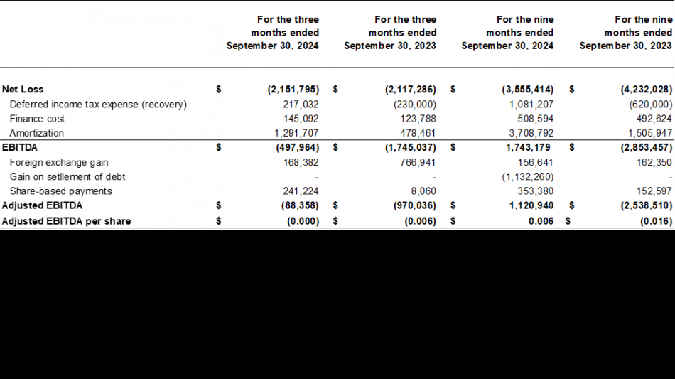 EBITDA, Adjusted EBITDA, and Adjusted EBITDA per share are non-IFRS ratios with no standardized meaning under IFRS, and therefore may not be comparable to similar measures presented by other issuers. For further information, including detailed reconciliations to the most directly comparable IFRS measures, see "Non-IFRS Measures" in this news release and the MD&A.