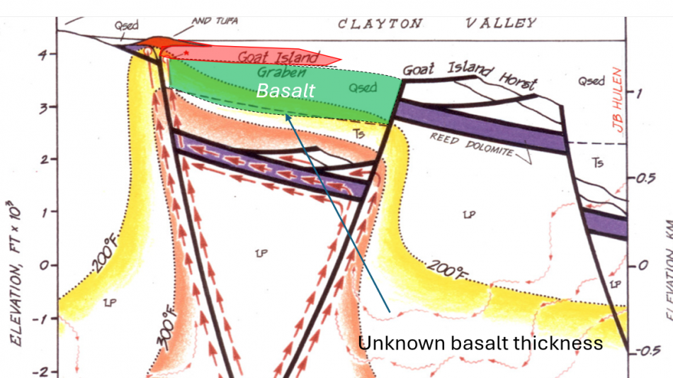 Mr. McMillin continues "There is a possibility of a deeper section of sediments below the basalt in the Goat Island Graben. Basalt could be an excellent aquitard for lithium brines."