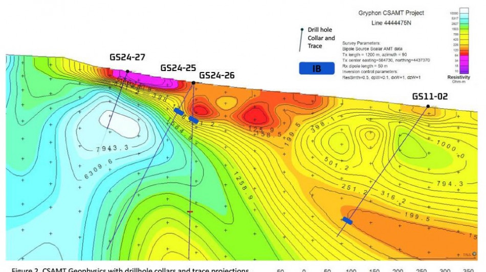 Reyna's drilling and surface mapping show that the stratigraphic contact marked by the IB coincides with a strong CSAMT geophysical anomaly that appears in the same position in many of the 17 kilometres of CSAMT survey lines run in 2006 and 2021. The anomaly appears to expand notably to the east of South Sadler towards one of the most interesting historic holes, GS11-02, where the same IB-related stratigraphic break between siliclastics and carbonates is seen (See Figure 2). It is not yet clear whether the CSAMT response stems from the IB directly or mineralization and alteration affecting or underlying it, nonetheless it appears to be a promising guide to mineralization across the entire property. Follow-up work combining the existing CSAMT lines with the detailed surface mapping and sampling data to identify high-potential target areas is underway.
