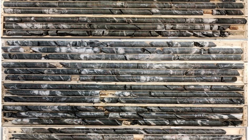 Figure 3. Drill core from MLMM-24-04 showing 54m intersection of quartz sulphide stockwork (assays pending)