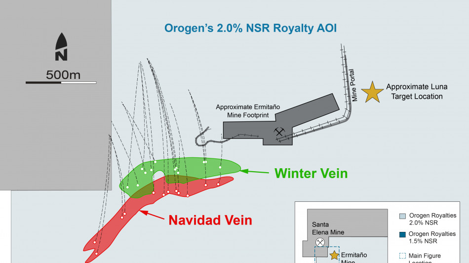 VANCOUVER, BC / ACCESS Newswire / February 5, 2025 / (TSXV:OGN)(OTCQX:OGNRF) Orogen Royalties Inc. ("Orogen" or the "Company") is pleased to announce the expansion of the Navidad gold-silver target ("Navidad"), located within the Ermitaño Mine concessions in Sonora, Mexico where the Company holds a cash-flowing 2% net smelter return ("NSR") royalty.
