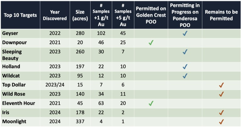 Solitario has identified ten high priority surface targets as shown in the table below. Two of the targets, Downpour and Eleventh Hour, were drilled in 2024. Four new targets are currently being permitted and are scheduled to be drilled in 2025. The other four high-priority targets may undergo future permitting following further review. In addition to the ten currently defined high-priority targets, Solitario has identified another dozen promising target areas that require additional surface exploration work. Furthermore, Solitario's future drilling has the potential to intersect the highly prolific Homestake Formation, situated below the Lower Deadwood formation.